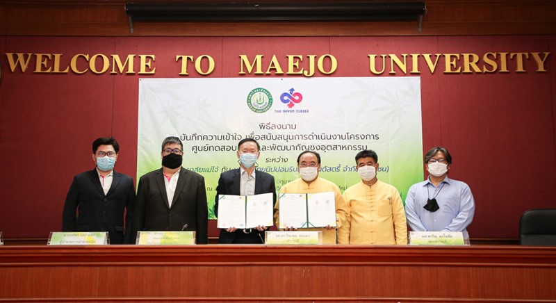 Mr. Amorn Dararattanaroj (3rd from left), Chief Executive Officer of Thai Nippon Rubber Industry Public Company Limited (TNR), signed a Memorandum of Understanding (MOU) with Associate Professor Dr. Weerapol Thongma (4th from left), the Director of Maejo University. TNR will support the testing center project research and development of the hemp industry, covering upstream, midstream, and downstream from cultivation. TNR will establish a factory to extract and develop hemp-containing products. TNR will legally import the hemp species from abroad to test its factors and conditions suitable for cultivation in the country. Then, TNR will obtain the essential substances with the correct quantity and quality level required by the extraction factory. TNR agreed to jointly exchange knowledge, experiences, training, and seminars on various hemp products. The management team and project leader witnessed the event at the University Council Meeting Room University office building, 5th floor, Maejo University.
