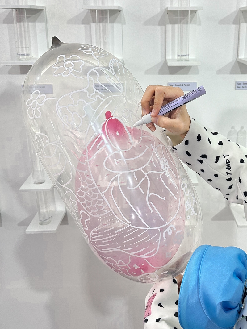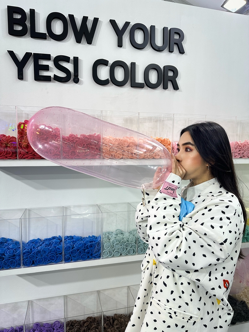 • โซน Blow your YES! Color พบถุงยางหลากหลายสี ที่ขอท้าให้คุณใช้ปากเป่าทดสอบความยืดหยุ่นของถุงยาง และมาตราฐานของถุงยาง ONETOUCH ได้ที่โซนนี้