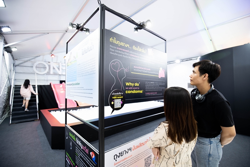 • โซน Grab your YES! type ตื่นตาไปทำแท่งแก้วกว่า 30 แท่ง จำลองรูปทรงต่างๆของการผลิตถุงยาง!